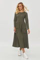 A sweatshirt dress is an elegant, yet simple proposition for everyday wear, which combines minimalism with a touch of style. The model has a simple, body-hugging cut that emphasizes the silhouette, but remains comfortable at the same time. The length of the dress reaches mid-calf, giving it a classic character. The soft and stretchy material ensures comfort for all-day wear. The dress has long sleeves, perfect for cooler days. The neckline has a V-shape, which visually elongates the neck and adds elegance. There is a subtle slit at the bottom of the dress, adding lightness and allowing for freedom of movement. You can pair it with white sneakers for a sporty yet elegant look, or wear it with ankle boots or ballet flats for a more formal effect. This dress is the perfect choice for everyday outings, meetings with friends, or for work. Thanks to its simple cut and elegant details, it can be easily styled for different occasions.