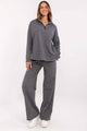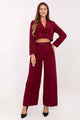 Stylish women's set consisting of a short blazer and long pants is the perfect proposal for women who appreciate the combination of elegance and comfort. The blazer with lapels and a collar is buttoned up, and the sewn-in shoulder pads give the silhouette a distinct, feminine shape and delicately shape it. The pants with long, wide legs and a high waist perfectly emphasize the waist and visually lengthen the legs. The zip and button closure ensures comfort, while the side slip pockets add practicality. The set impresses with its well-thought-out cut and universal character, it will work great both for everyday wear and in more elegant stylizations. An ideal choice for the office, meetings, or after-work outings.
