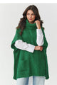 Discover a unique women's poncho-style sweater that combines trendy design and unparalleled comfort. The loose, oversized silhouette with elbow-length sleeves and a high, non-fitting collar envelops the figure, adding style and providing warmth even on cooler days. Practical, large front pockets give it a casual character and make it perfect for everyday wear as well as more elegant stylings. Additionally, the sleeves and hem are finished with a narrow ribbing. The sweater is made from a high-quality blend of fibers: acrylic, polyester, wool, and polyamide, making it soft, pleasant to the touch, while also durable and resistant to deformation. The structural, thicker knit emphasizes its unique character, making it an ideal choice for autumn and winter. Available in timeless, fashionable colors: beige mélange - a classic that goes with everything, bottle green - deep and elegant, chocolate - a warm and sensual shade, graphite mélange - modern and versatile. If you are looking for a practical and stylish sweater, this model is a perfect choice. It pairs perfectly with jeans, leggings, or a classic shirt, creating stylish layered looks. Choose warmth, comfort, and timeless elegance, choose a poncho sweater with a collar and pockets that will quickly become a favorite piece in your fall-winter wardrobe.