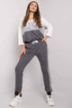 A sweatshirt set consisting of a sweatshirt and pants. Short sweatshirt with long sleeves and a hood. Long pants with waist tie and slip pockets.