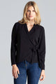 Navy blue long sensual sleeveless dress, tied at the shoulders with a large deep neckline. The upper part of the dress decorated with airy fabric. There is an elastic band sewn into the waist, on the left side there is a slit from the waist. Underneath a partially fitted dress with slightly flared bottom before the knee.