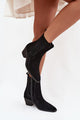 Women's ankle boots made of natural leather are an elegant proposition for cooler days. Lined with felt, they provide comfort and warmth, while a stable block heel adds slimness to the silhouette, guaranteeing comfort while wearing. The model fastened with a practical zipper is easy to use, and the decorative strap with a buckle adds style and a modern character to the whole look. These shoes are perfect for both everyday and elegant stylizations.