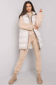 A set consisting of a sweatshirt, sweatpants and a down vest. Zippered vest with pockets. Sweatshirt of simple cut with long sleeves and hood. Sweatpants with pockets and waist tie.