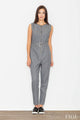 Women's overalls with exposed shoulders. Jumpsuit with sewn-on elastic bands. To the suit sewn colorful airy fabric.