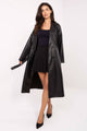 Women's transitional jacket with a casual character, perfect for autumn, winter, and spring. Made of a blend of polyester and elastane, it impresses with a smooth texture of the material and a comfortable cut, which works great in everyday stylizations. The model of standard length is equipped with a classic collar and lapels, which add a timeless style to the whole. The biggest decoration of the jacket is the fringes placed on the sleeves, front, and back, giving it an original, slightly boho character and distinguishing the outfit. Light, unlined, and without fastening, it is a great addition to everyday outfits, providing comfort and freedom of movement, while also attracting attention with its non-traditional finish.