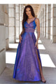 Long dress with straps, deep wrap neckline, cut under the bust. Flared bottom with a long slit. An ideal proposition for many occasions.