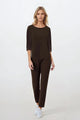 Stylish and comfortable women's pajamas in a 2-piece set, created with everyday relaxation and feminine aesthetics in mind. The top with 3/4 sleeves and a round neckline looks subtly and elegantly, also ideal as homewear. Maintained in delicate colors, the pajamas emphasize natural charm and feminine style. The loose, comfortable pants with long legs and an elastic waistband provide freedom of movement and comfort throughout the night. The entire set is made of delicate, pleasant to the touch material that gently envelops the body. It is a perfect choice for peaceful evenings and lazy mornings stylishly, comfortably, and with class. Ingredients: Bottom: 100% Viscose Top: 8% Elastane, 92% Viscose.