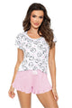 Women's pajamas with a sleek and elegant cut, designed with comfort and style in mind. The 2-piece set consists of a short-sleeved U-neck top and shorts with a comfortable elastic waistband. The loose, fitted silhouette provides freedom of movement and sits perfectly on the figure. Made of soft, breathable high-quality fabric that is gentle on the skin and perfect for warmer nights. The fashionable color scheme and elegant style make the pajamas ideal for stylish homewear as well. Designed and sewn in Poland, combining quality, comfort, and modern design.
