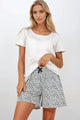 Women's two-piece pajamas, combining comfort with modern, sleek styling. The short-sleeved top with a scoop neckline provides freedom of movement, and the loose fit perfectly complements the silhouette. The long pants with a straight, wider leg and an elastic waistband guarantee full comfort when wearing. Made of delicate, pleasant to the touch material with high-quality print, it will be perfect for both sleeping and as a home outfit. Designed and sewn in Poland, this product is an excellent choice for women who value quality, comfort, and style.