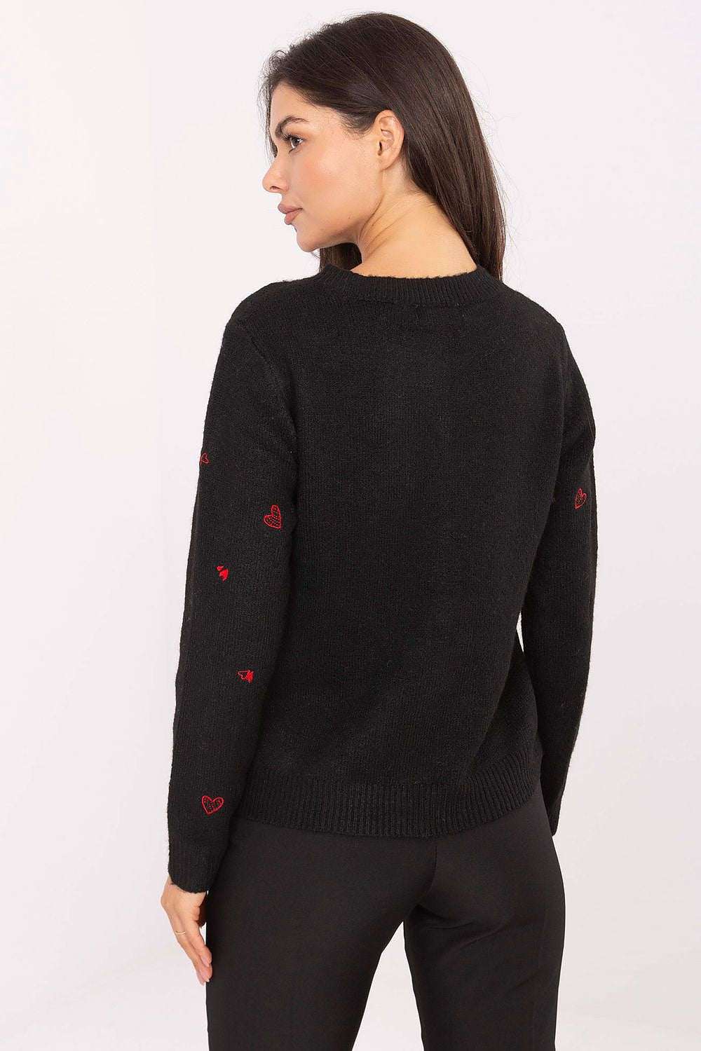 Charming women's sweater with a casual character, perfect for everyday styling. Made of a pleasant to the touch blend of polyester, acrylic and wool, which provides warmth and comfort. The model has a standard length, long sleeves and a round neckline, with embroidered hearts on the front and sleeves, giving the whole a girly charm. The button fastening emphasizes the classic cut and makes the sweater look great with both jeans and a skirt.