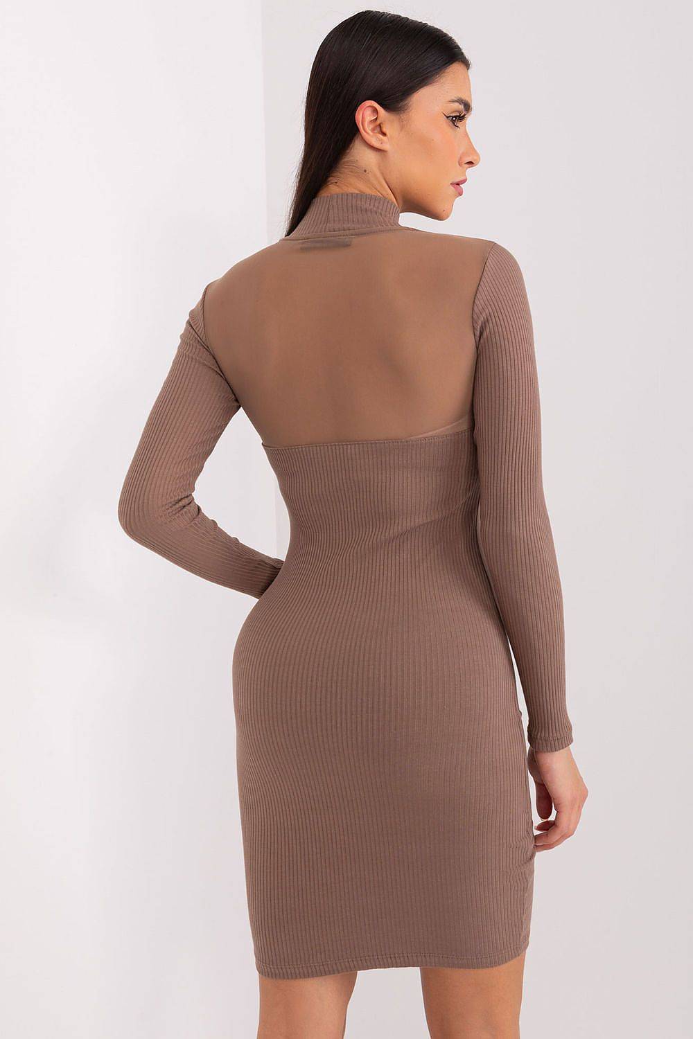 This pencil dress is a combination of elegance and everyday comfort. It has a delicate neckline and an upper back made of transparent material, which gives it a subtle charm. The dress is suitable for many occasions. Made of cotton, it is pleasant to wear. It has long sleeves, which makes it suitable for different seasons. The length of the dress reaches before the knee, and its ribbed material gives it an interesting look. It is an ideal choice for women who appreciate style and comfort at the same time.