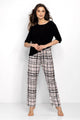 A two-piece set in delicate colors, ideal both as pajamas and homewear. The blouse with a U neckline and long sleeves is distinguished by its feminine styling, providing comfort and elegance. The loose, comfortable cut of the pants with long legs and an elastic waistband guarantees freedom of movement and comfortable wear. The set is made of soft, stretchy material and features high quality workmanship. Designed and sewn in Poland, this set is a perfect combination of comfort and style, perfect for any occasion.