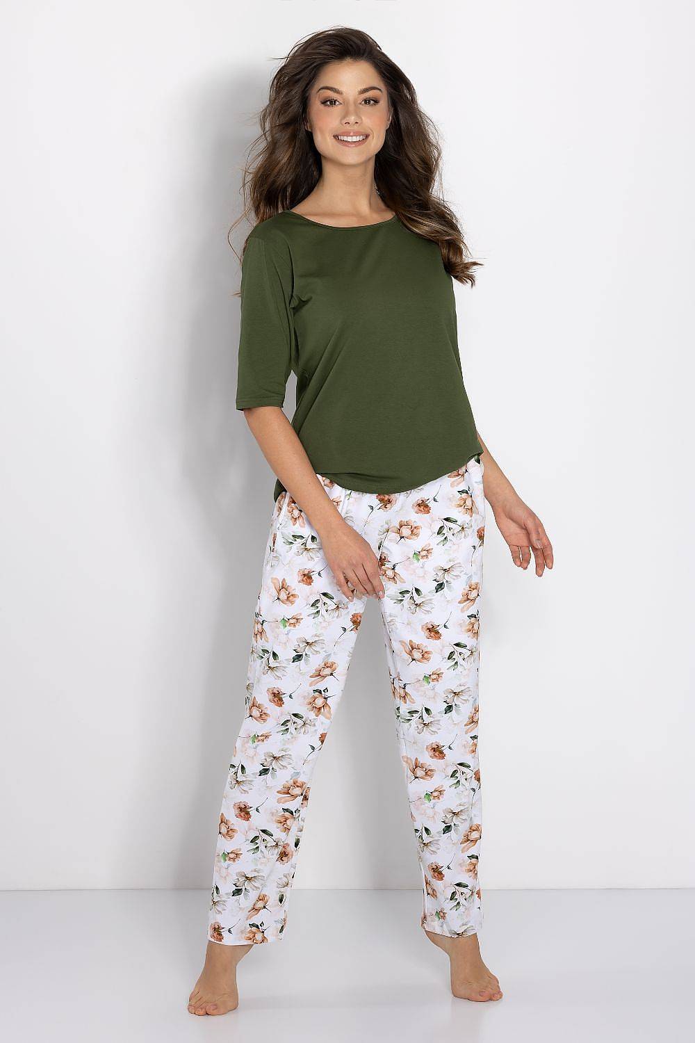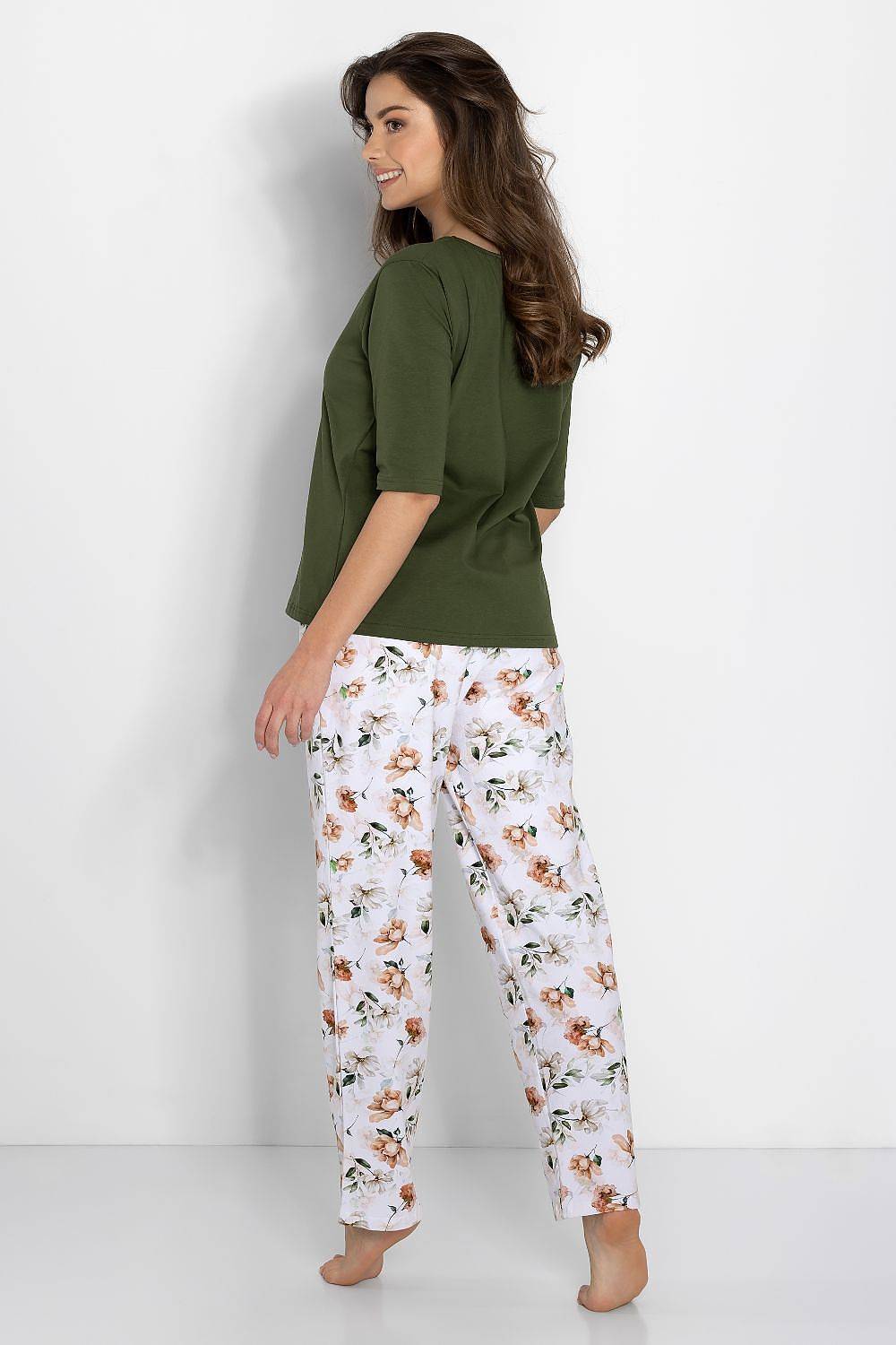 Discover a unique women's pajama that combines elegance with comfort, perfect for both sleeping and as homewear. The 2-piece set consists of a 3/4 sleeve blouse with a U-neckline, sewn in delicate colors that emphasize feminine style. Loose top and oversized pants with side pockets guarantee freedom and comfort. The long pants with an elastic waistband are made of elastic, natural material, ensuring a pleasant fit. The pajamas are hypoallergenic, have an OEKO-TEX Standard 100 certificate, and are characterized by high-quality printing. Designed and made in Poland, it is a perfect choice for any woman who values subtle style and comfort.