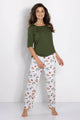 We present a women's pajama that combines subtlety with elegance, perfect for everyday wear or as a gift. The 2-piece set consists of a U-neckline blouse with long sleeves and regular fit pants with an elastic waistband that perfectly accentuate the silhouette. The pajama is made of elastic, natural material, which provides comfort and freedom of movement. The delicate color scheme adds charm, and the high quality confirmed by the OEKO-TEX Standard 100 certificate guarantees safety when wearing. Designed and made in Poland, it is a perfect choice for every woman who values style and comfort. Composition: Top: 92% cotton, 8% elastane, Bottom: 95% cotton, 5% elastane.