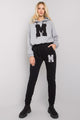 Colorful women's sweatshirt set consisting of a sweatshirt and pants. Sweatshirt with 3/4 sleeves and a hood, partially zippered. Long pants with waist tie and slip pockets.