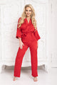 Two-piece set made of high-quality, delicate satin-like fabric. The blouse has a kimono cut and a waist belt to accentuate the figure. The long, straight pants with wider cuffs add sophistication. The Perai set is an elegant pajama proposal that will fit even the most demanding interiors. In this set, you will feel sensual, elegant, and feminine. The cardboard packaging in which the pajamas are located is perfect for a gift.