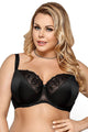 Excellent soutien-gorge doux pour femme. Les bonnets enveloppent parfaitement la poitrine et la maintiennent, exposant joliment le décolleté. Le bas des bonnets est en maille douce. Le haut, le pont et les côtés sont en dentelle raffinée, doublée d'une délicate résille. Un petit nœud au milieu orné d'un bijou orne le bonnet. Les bonnets sont encadrés d'une armature qui enveloppe la poitrine. L'ensemble permet à la poitrine d'être parfaitement froncée, liftée et de conserver une belle forme arrondie. Les côtés larges en tricot Lycra résistant, en plus équipés d'armatures verticales, garantissent que le soutien-gorge reste en place.