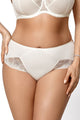 Utmärkt, mjuk bh för kvinnor. Kupor samlar bysten väl och håller den på plats, och exponerar snyggt dekolletage. Nedre delen av kopparna av slät stickat tyg. Den övre delen av kupor, brygga och sidor är gjorda av vacker spets, fodrad med delikat mesh. En liten rosett i mitten med en smyckesprydnad. Skålarna är formade med en tråd runt brösten. Det hela gör att brösten är perfekt samlade inuti, lyfts och bibehåller en vacker, rundad form. Breda sidor gjorda av kraftigt Lycra-stickat plagg, dessutom utrustade med vertikala bygel, säkerställer att BH:n stannar på plats.