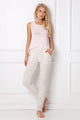 Härlig, grå och röd pyjamas med "Merry Kissmas"-tryck och en söt "Cake" i mitten. Förslaget från julupplagan av Aruelle. Grå blus med röd kant i halsen, moderiktiga 3/4-ärmar, röda shorts med små vita prickar, med rosett i midjan och två fickor på sidorna.