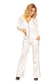 Lätta och feminina dampyjamasar skapade med komfort i åtanke för varma dagar. Blusen med korta ärmar och V-ringning ser snygg ut och ger rörelsefrihet. Setet kompletteras av korta shorts dekorerade med ett tryck, utan fickor, avslutade med en resår i midjan och en söt rosett som ger en subtil charm till helheten. Det är det perfekta valet för kvinnor som uppskattar komfort och en delikat, flickig stil.