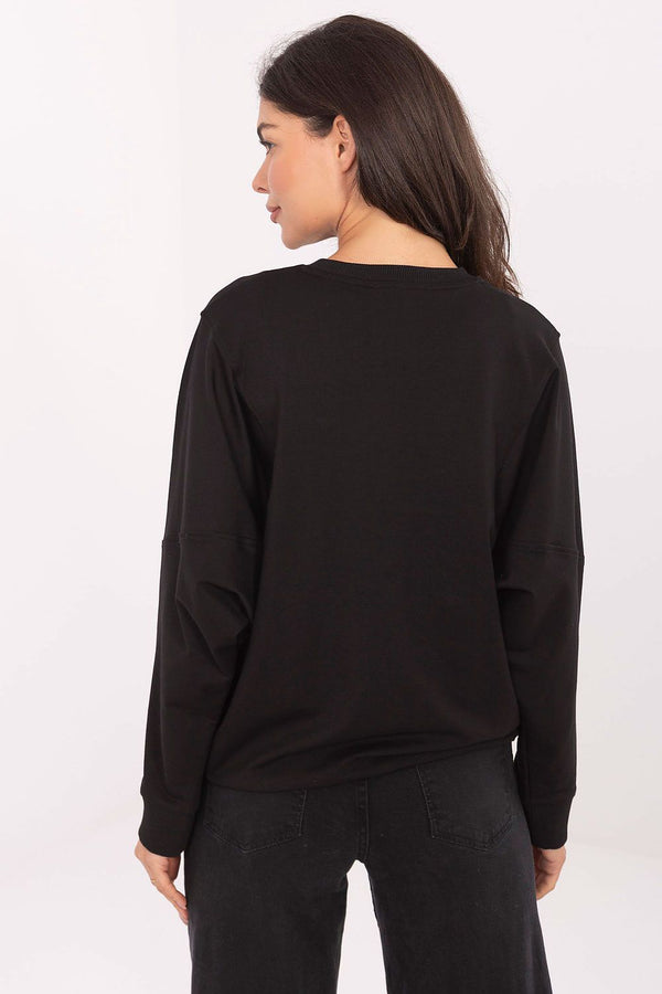 Women's casual sweatshirt with long sleeves is a comfortable and versatile proposition for everyday wear. Made of soft cotton with added elastane, it guarantees wearing comfort and perfect fit to the silhouette. Standard length and classic, round neckline make the sweatshirt look great with both trousers and skirts in everyday stylings. The model with a smooth texture, enriched with a subtle badge on the front, stands out with its minimalist design, making it suitable for many occasions. The lack of fastening ensures freedom and simplicity in use.